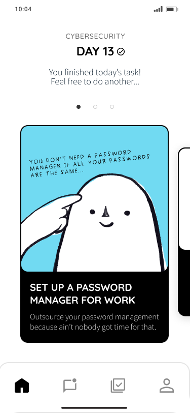 A mobile app with covert intentions to improve young adult’s adoption of expert-recommended security & privacy tools/practices through mixing cybersecurity with daily self-improvement tasks, and reinforcing changes by leveraging peer influence.